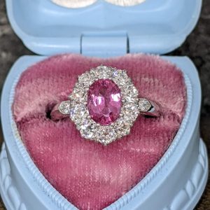 Pink Sapphire and Diamond Cluster Ring in Platinum