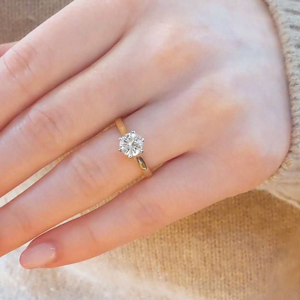 A classic solitaire diamond ring in 18k yellow gold and platinum.