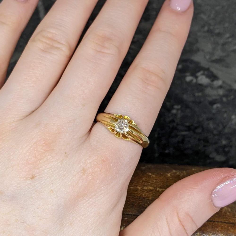 An antique Old Mine Cut diamond ring in 18k gold, dating from circa 1900.