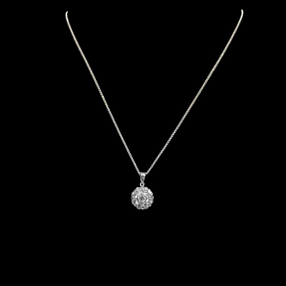 This pendant is beautifully bright, set with a central round brilliant cut diamond with a carat weight of 0.25cts. The central diamond is surrounded by a further eight diamonds in a cluster style, secured in bezel settings. This is a wonderful pendant – substantial and eye-catching while wearing with a neat look, perfect for anyone who has been looking for a quality pendant.