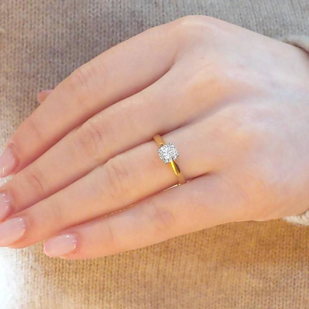 A classic solitaire diamond ring in 18k yellow gold and platinum.