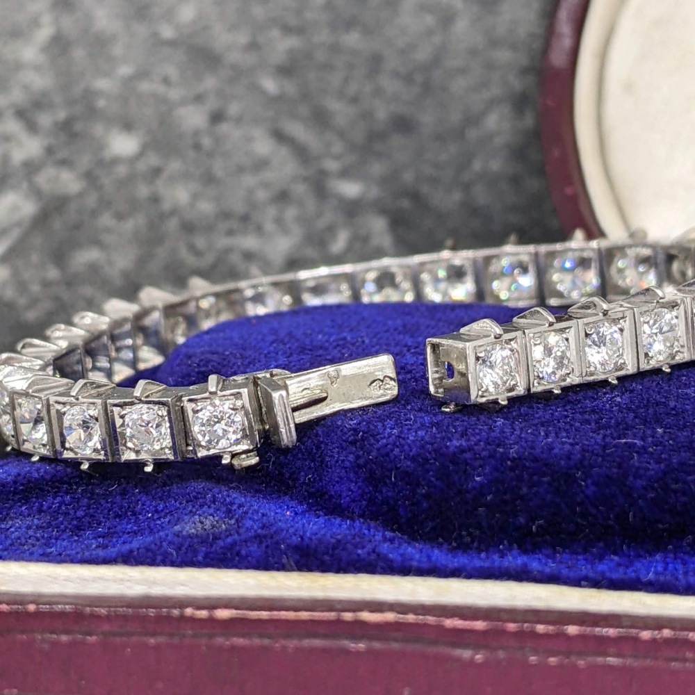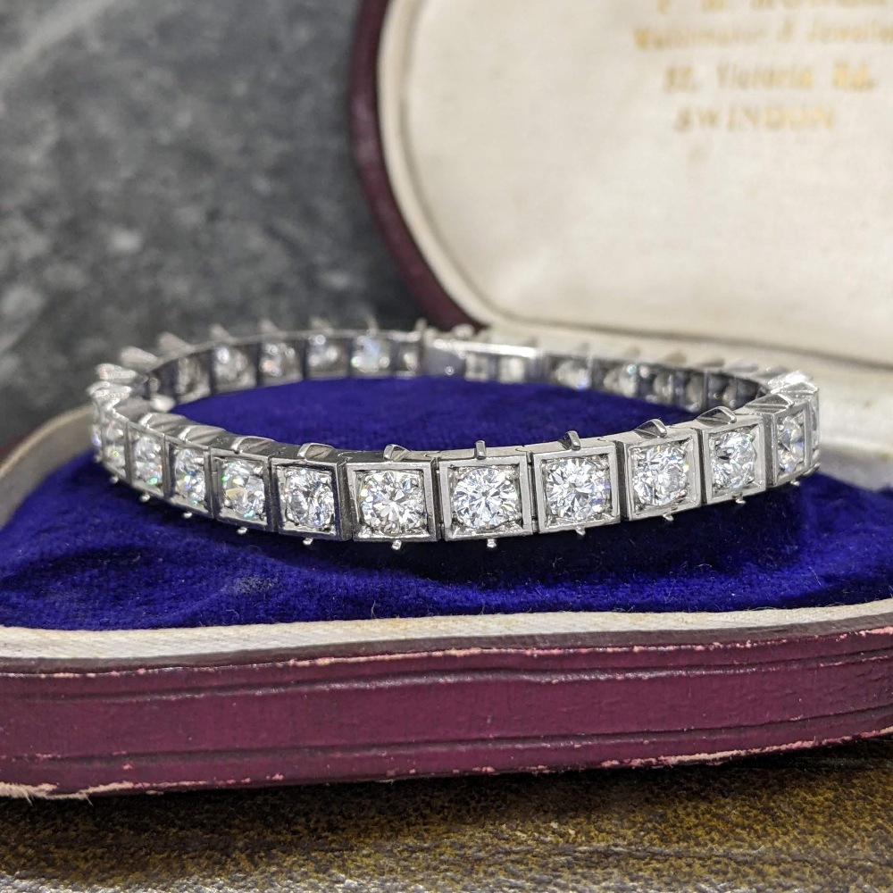 The bracelet is set with 30 round brilliant cut diamonds graduated in size from the centre, with an impressive total diamond carat weight of 6.1cts. These are bright and lively diamonds, G colour and VS clarity. This is very impressive piece with a substantial and robust feeling on the wrist at 40.5 grams – something we love to see in a diamond bracelet.