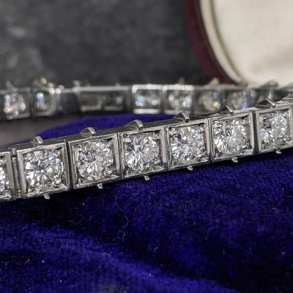 An outstanding handmade diamond bracelet set with 6.1 carats of beautifully bright diamonds.