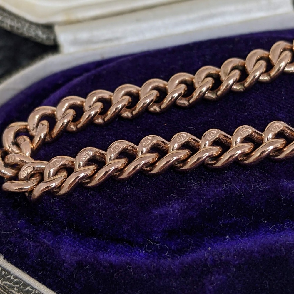 Hallmarked for 9k gold. Stamped ‘375’ for 9k gold on each link.